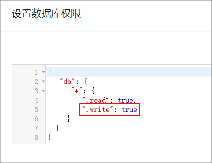 5.单击修改数据库权限,将 write 权限修改为 true。