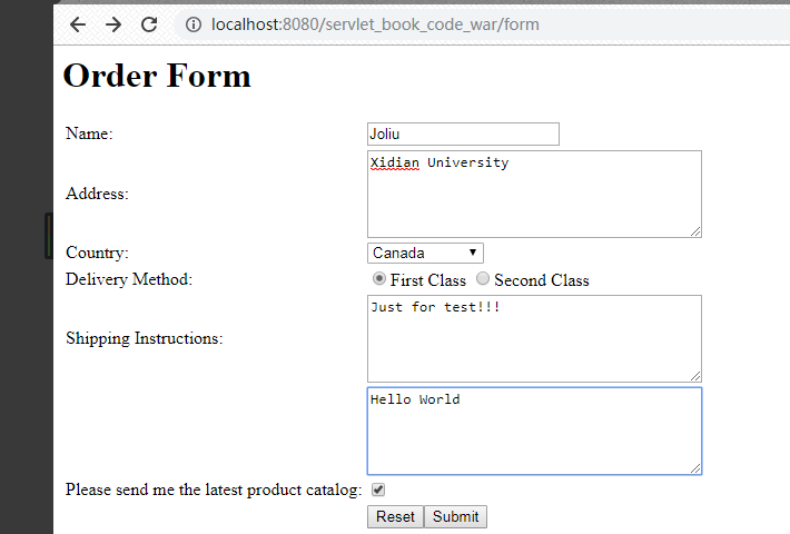 doGet()发送的表单如下: