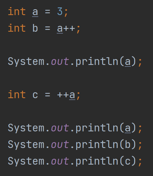 首先计算两行代码——在a++后输出结果——就是a=a+1——a=3+1=4