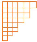 然后我们发现,对于互异拆分数,我们的列数即选的数的个数只有 \(O(\sqrt n)\) 级别,然后以及还有性质,每一行单调不增,且相邻两者变化量不超过 \(1\),即最大的行大小往下每种行大小都存在。