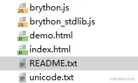 使用brython-cli install可以初始化一个项目,产生的文件为:
