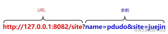 我们是不是得先将url给拆解一下,拆解为URL 和 提交的参数 部分,例如我们的URI为http://127.0.0.1:8082/site?name=pdudo&site=juejin,则可以拆解为如下形式。