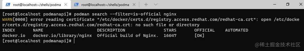 使用podman搜索官方发布的nginx