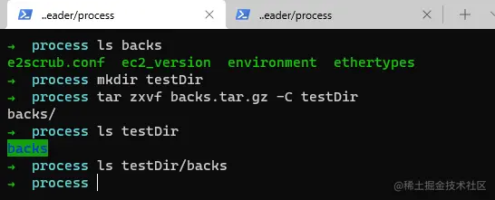 执行完毕后,我们发现backs目录中有数据,而backs.tar.gz文件则为空的压缩包