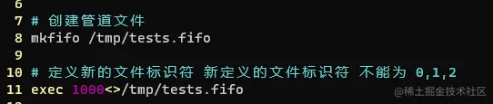 exec 创建文件的标识符,系统中存在的标识符,为 0,1,2 即 stdin,stdout,stderr, 代码中的 exec 1000<>/tmp/tests.fifo 其实定义的是输入和输出描述符,其标识符为1000