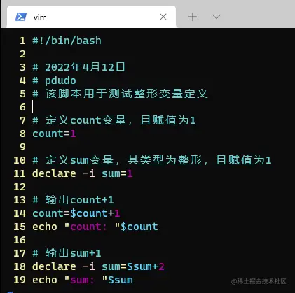 若我们定义为整形变量,则会进行相关运算,然后将结果赋值给变量,其实在shell脚本中还有其他运算方法,比如在脚本中嵌套bc命令,例如: echo "1 +2" | bc