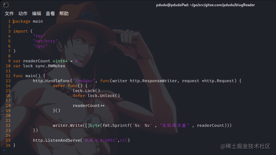 我们还是使用最早的那个阅读量的案例,go代码如下