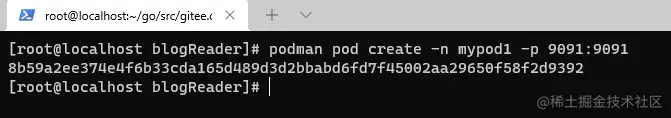 使用命令: podman pod create -n mypod1 -p 9091:9091