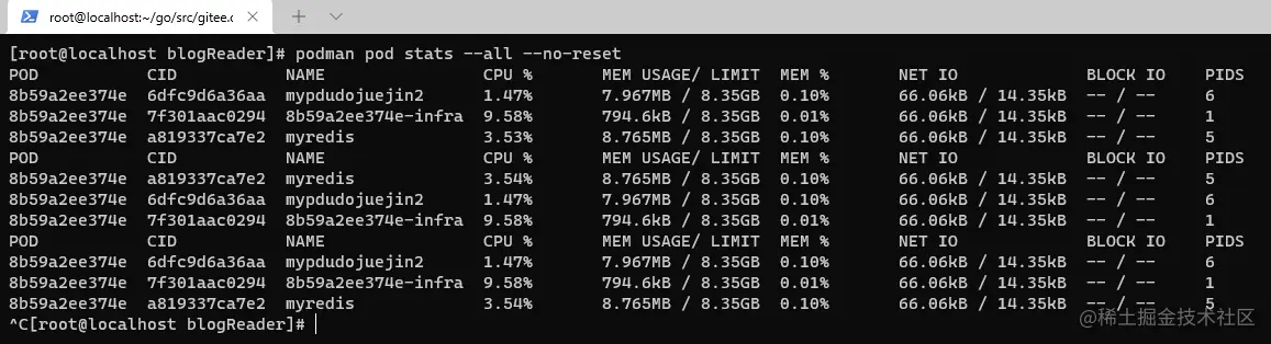 ctrl+c,否则,会持续输出pod的进程资源占用信息