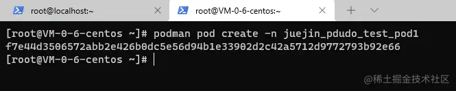 例如我们使用命令: podman pod create -n juejin_pdudo_test_pod