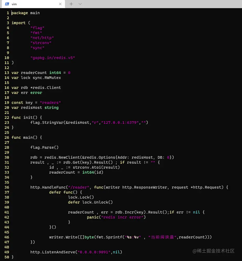 我们就用之前我们的实例来改下,我们将返回“阅读量”从变量的形式,我们更改为从 Redis数据库获取,具体代码如下