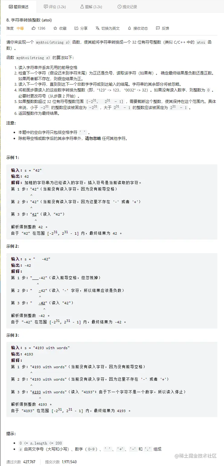 该问题想表达的是在字符串中,寻找数字(可能是负数),就那些组装,返回整数