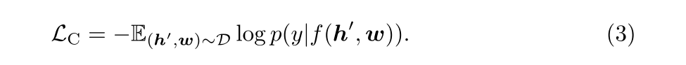 编码器的输出为(h',w)对这部分增加了一个FC层作为一个二分类器,预测是否含有表达原来的图片信息(y=1)。