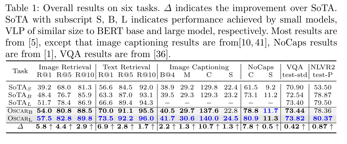 4.contributions:提出VLP模型Oscar,在多个V+Lbenchmarks上创纪录,针对他们的main idea开展了广泛的分析和实验论证。