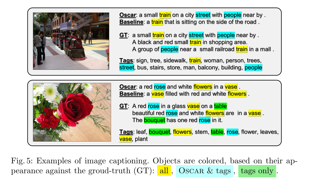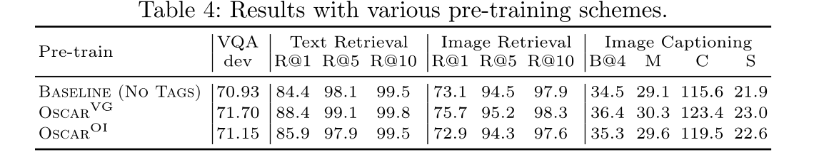 finding: 1.我们再一次验证了要tag 2.VG版本略好于OI版本,解释为VG的对象集丰富(ps:这个很好理解啊,标签多才好caption,准确率还有BERT兜着)