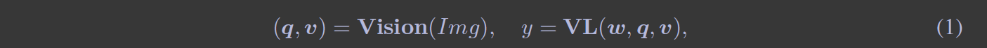 从上文IO的角度,预训练目标检测模型扮演V的角色,其输出q为检测目标名,v((v^, z)为区域特征v^为P-D(P=2048)特征向量, z为R-D(R=6)位置向量