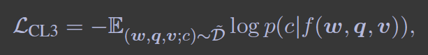 这里将[CLS]token作为(w,q,v)来看待,那么就出现了三种样本1.匹配样本([CLS],c=0)2.caption污染(c=1) 3.answer污染(c=2)。使用FC层进行三分类