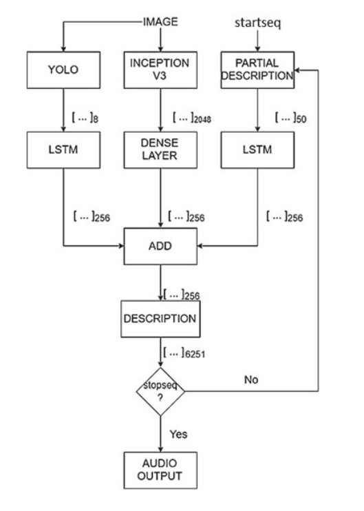 inputs:1.将图像输入微调的inceptionV3得到的2048d的特征向量 2.前一时序的caption 3.YOLO的输出