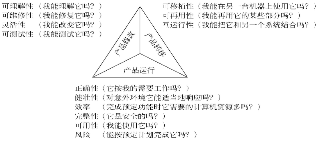- 技术角度,对软件整体质量影响大的质量属性才是质量要素