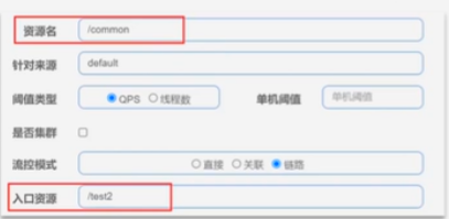 链路:统计从指定链路访问到本资源的请求,触发阈值时,对指定链路限流