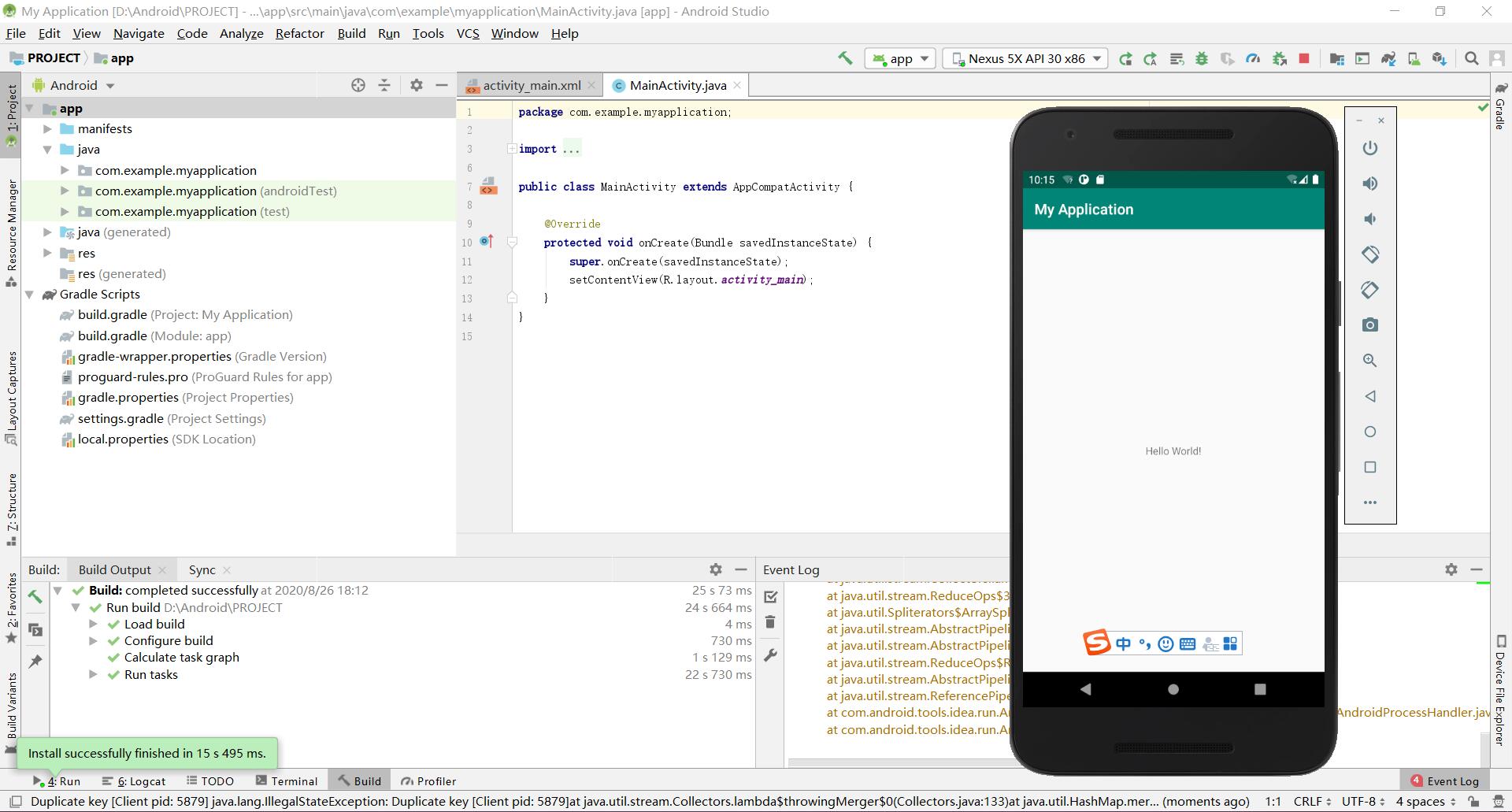 安装android studio开发环境,并运行出一个helloworld程序(真机或模拟器运行),并截图