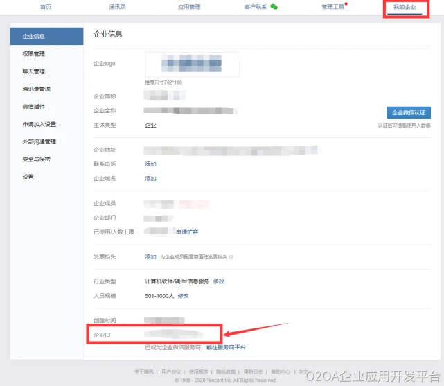 注册成功后,需记住企业id,下面配置需用到,位置如下图所示: