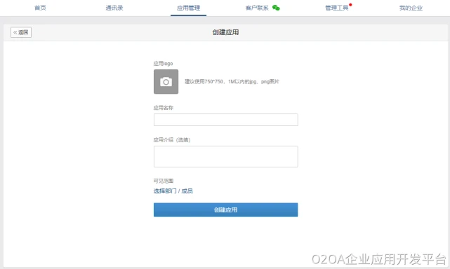 应用LOGO:可以自行制作合适大小的LOGO,此LOGO将在企业微信中展示。