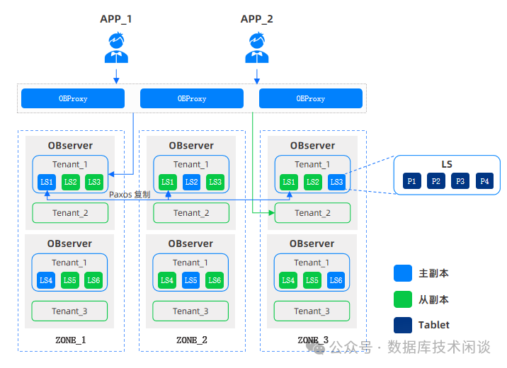 OBV4 版本的改进就是副本的概念还是不变,但是多副本同步的粒度变粗了,做成一批数据副本的同步集中管理。那这一批副本到底是多少数据呢?取决于租户的 PRIMARY_ZONE 设置。