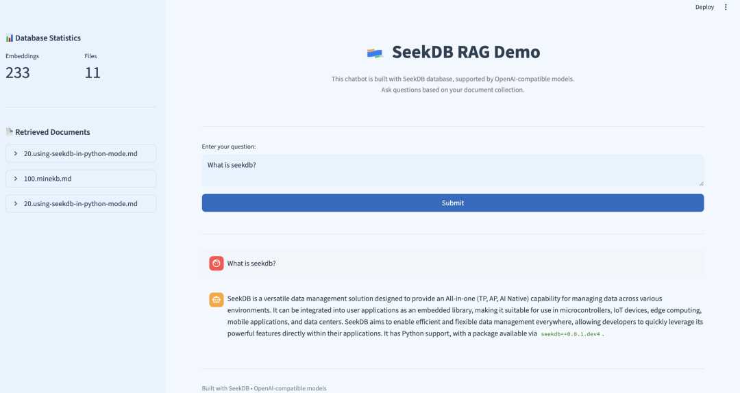 快速部署: https://github.com/oceanbase/pyseekdb/blob/main/demo/rag/README_CN.md
