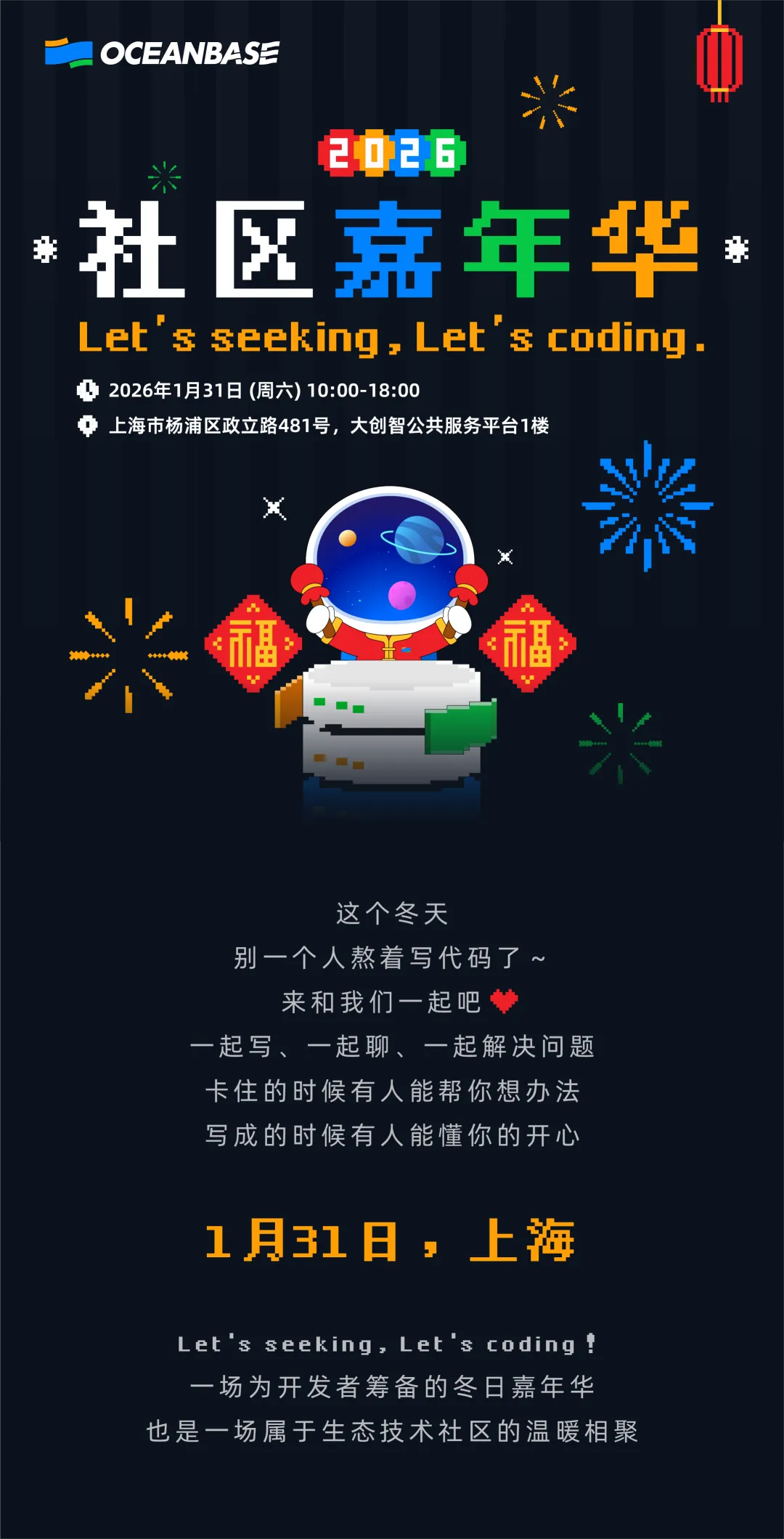 你期待的科技盛宴,正在加载 —— 1 月 31日,OceanBase 社区嘉年华,将在上海启幕!