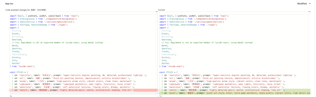 还可以通过 view diff 看下这句 “像素风” 的要求,让代码发生了啥变化。