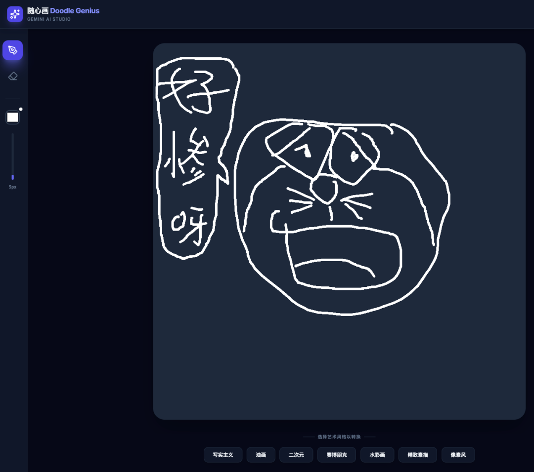所以想试试用 Google AI Studio 生成一个应用,输入一张随手涂鸦的草图,然后让 AI 基于人类脑子里的这张草图,加工绘制成指定风格的漂亮图。