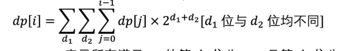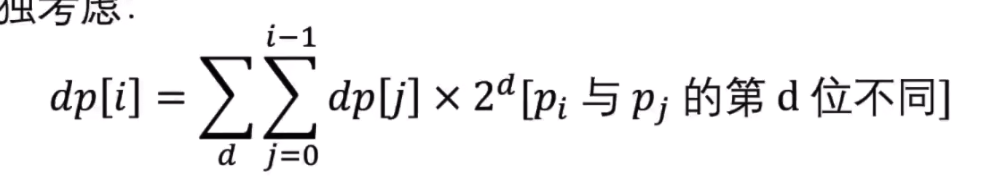 由于要维护i前面一堆\(f_i\)的和,所以定义一个\(w_{k,e,p,t}\)表示某数k为e,p位为t的\(f_j\)总和,用它转移\(f_i\)。