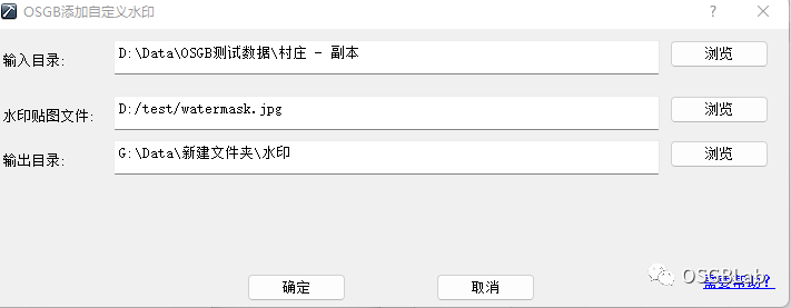 设置好输入目录,输出目录,以及水印文件之后,点击确定之后很快就给OSGB添加好水印了。