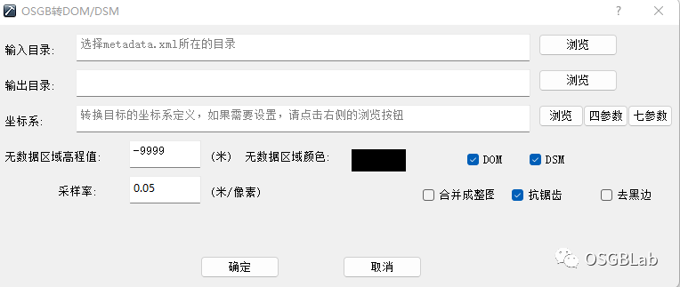 然后点击OSGB转DOM DSM打开以下界面: