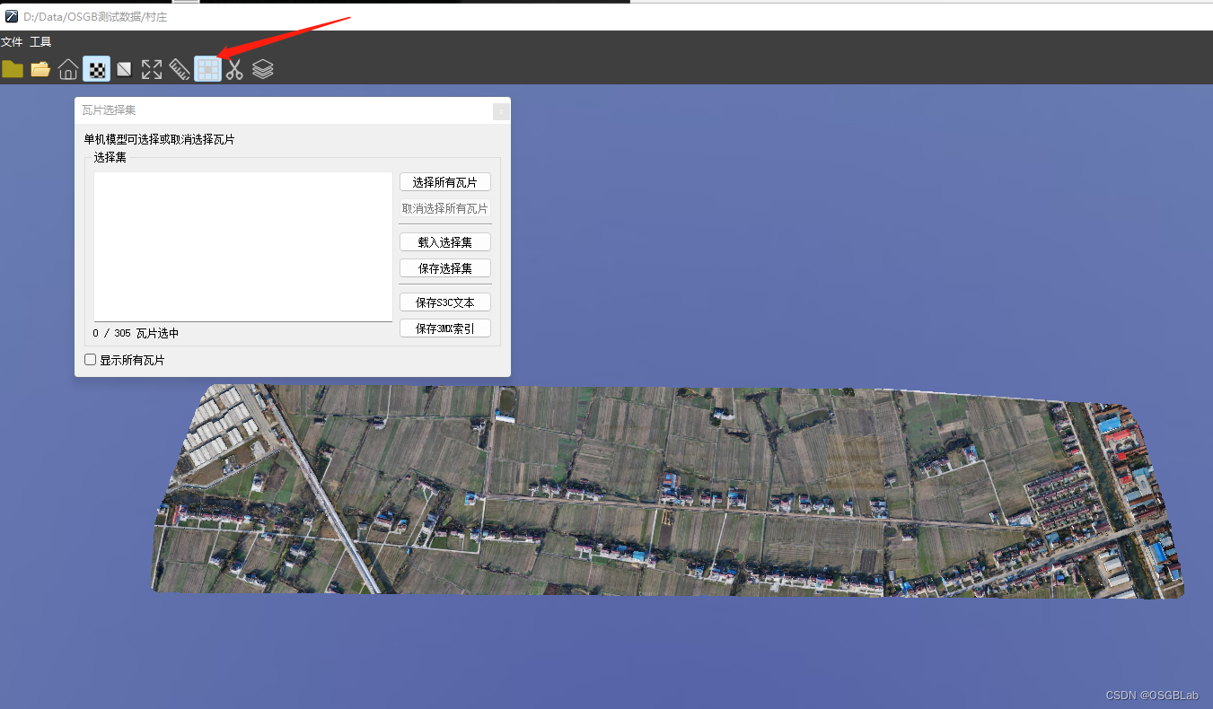 3 在三维浏览界面中点击“瓦块选择“按钮后,弹出瓦块选择界面,然后选择需要的瓦块,如果所有瓦块都需要,点击“选择所有瓦块“。