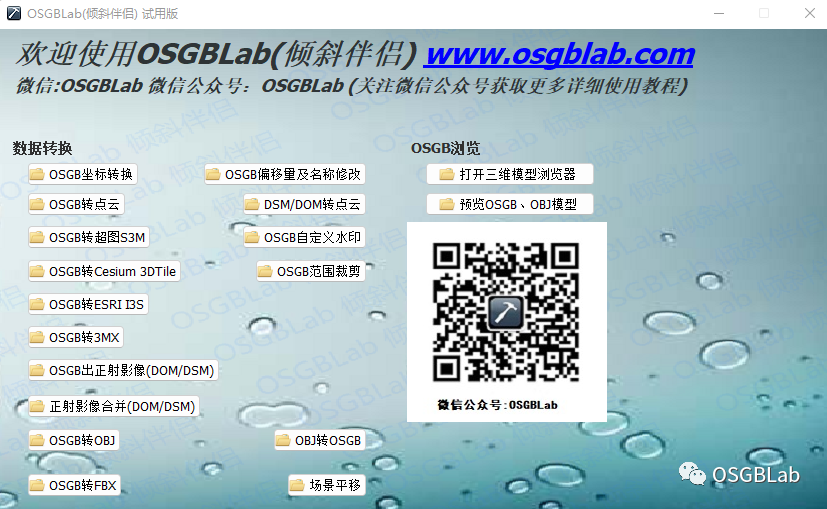 Step 1 打开三维模型浏览器,并选择一个OSBG数据进行三维模型预览。可以直接把metadata.xml往osgblab中一拖即可打开osgb场景,也可以通过在三维浏览器中点击打开文件或者文件夹来选择osgb场景打开。