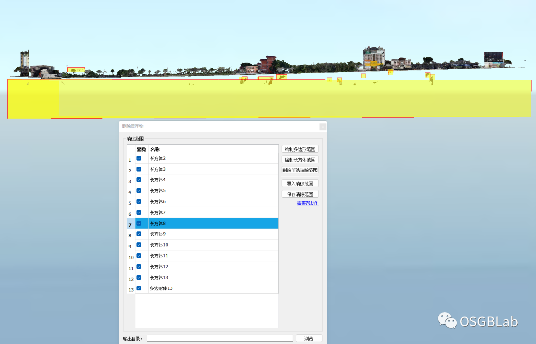 在删除漂浮物面板中,最重要的是“绘制多边形范围”和“绘制长方体范围”这俩按钮。这里先做一下简单介绍: