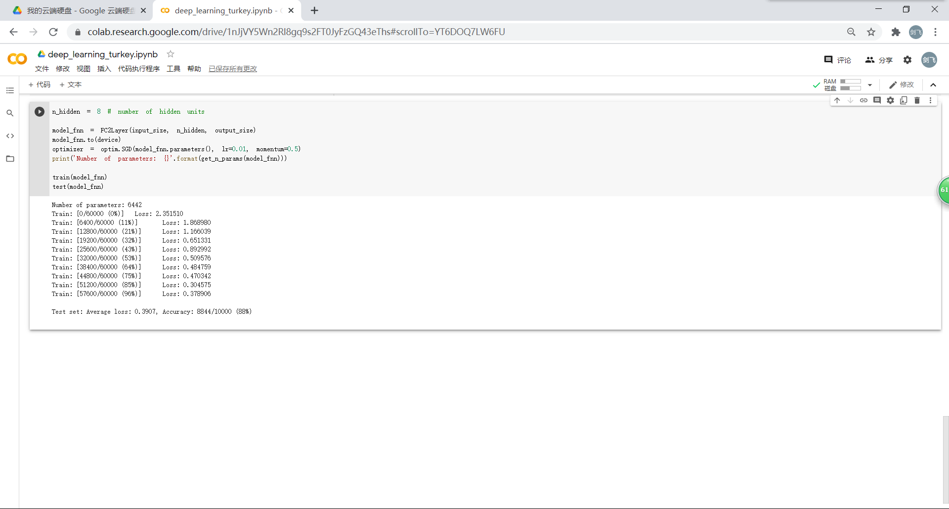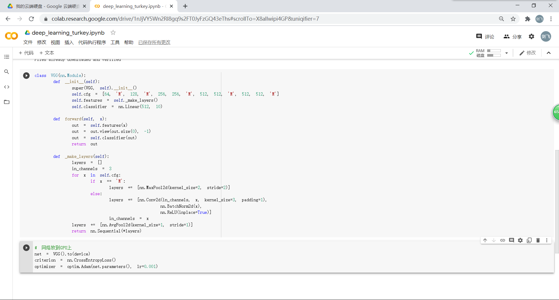 通过三个实验,让我们体验到了从最简单的全连接网络到卷积神经网络到VGG16的实施以及效率逐步提升。让我对于之前的视频学习有了一个更具体形象的理解,能大概理解代码的意思和内容,但是靠自己依然无法写出(很多库和函数的调用并不是很会)。希望能够慢慢进步!