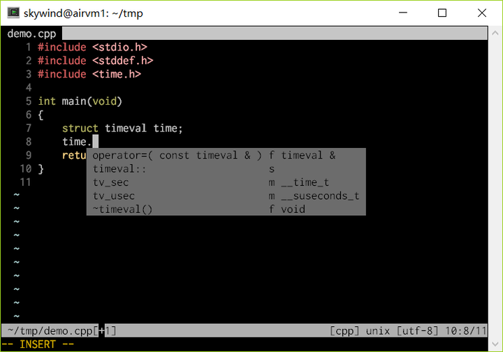 代表在 C/C++ 下面,用户除了手工 CTRL+SPACE/C 外,写代码的时候必须输入:. 或 -> 或 :: 才能弹出语义补全,下面我们在自己的 vimrc 中加入如下额外设置: