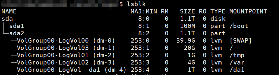 那只能接着询问google,google告诉还有一个神奇的命令叫做lsblk。这个命令可以查看磁盘信息,结果如下: