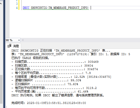 DBCC SHOWCONTIG(fq_viewvform) --指定表索引碎片情况