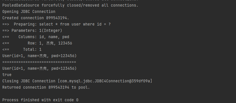 Returned connection 899543194 to pool. 将这次查询加入连接池