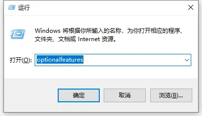 如果开机的时候电脑蓝屏使用Windows+R输入optionalfeatures