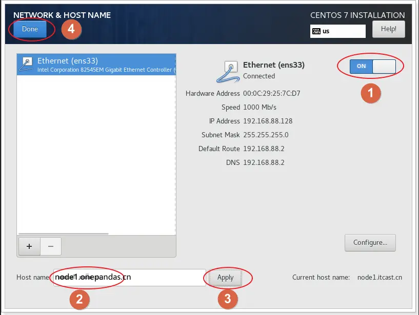 echo 'node1.onepandas.cn' > /etc/hostname