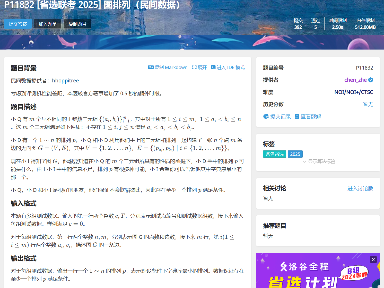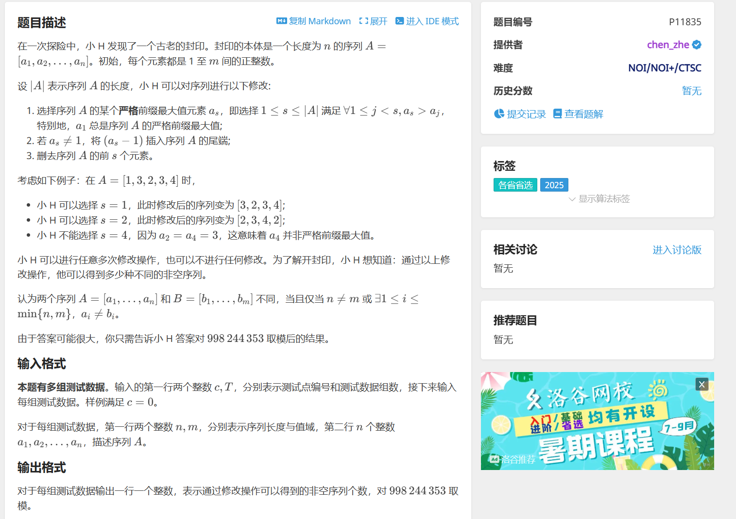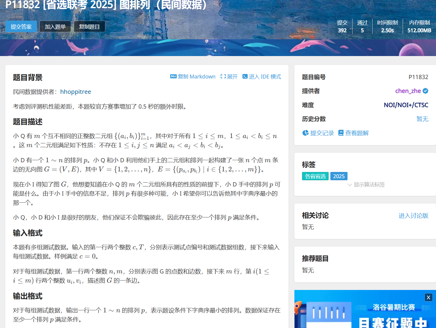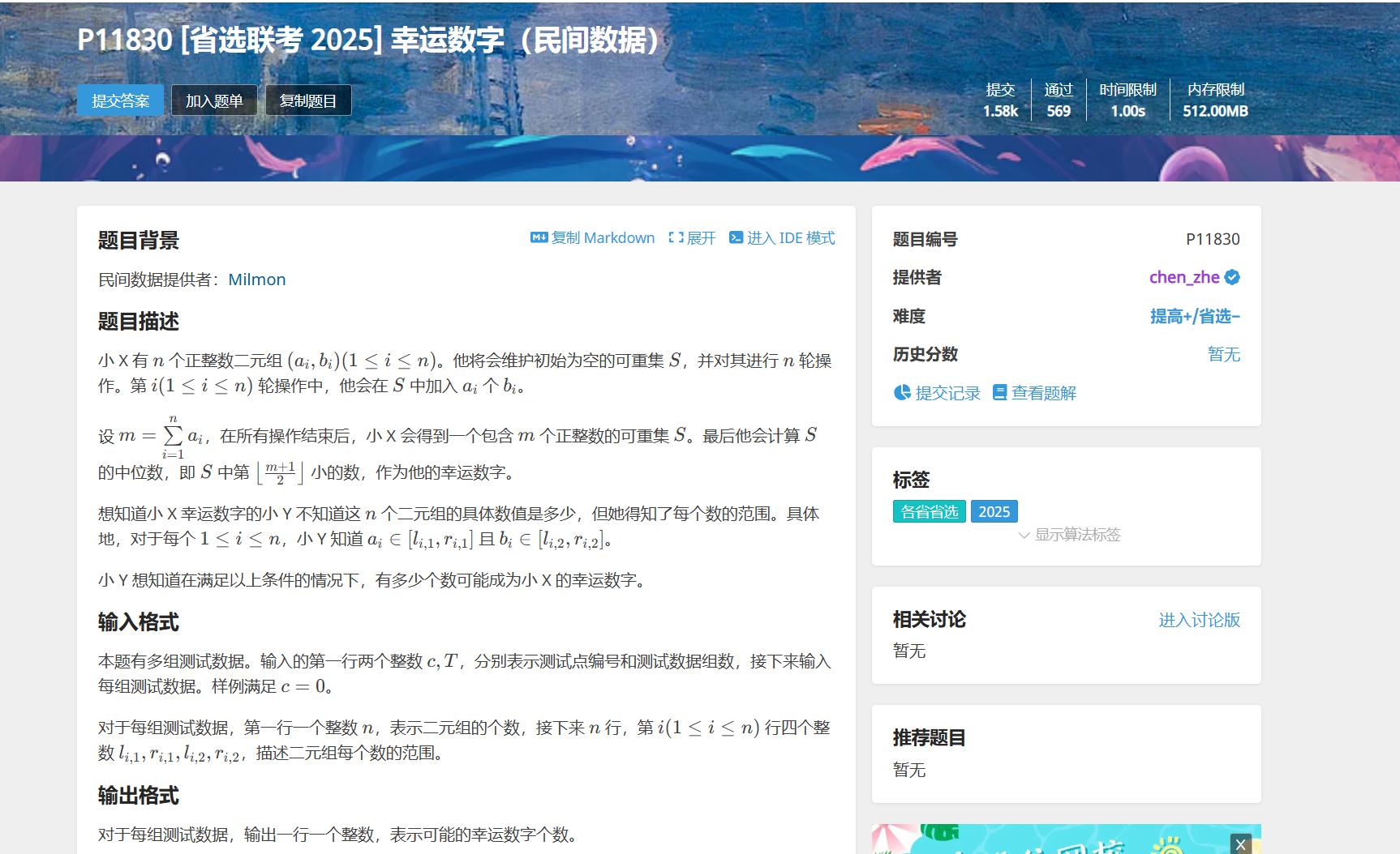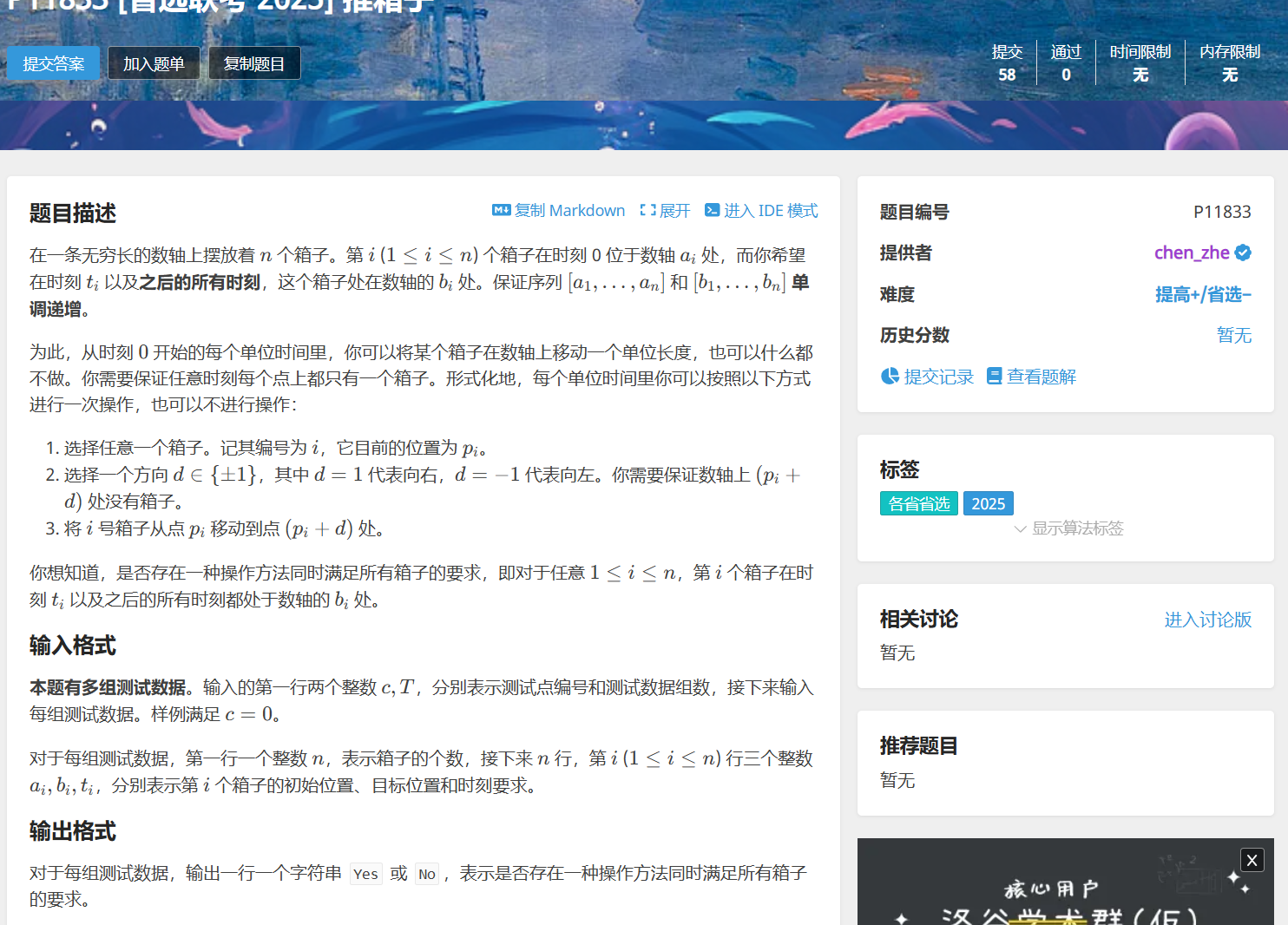 随便瞎搞了个判断上去,能拿 \([0,12]\) 分,但极大概率是零蛋,因为恶臭多测,哦才发现今年一坨题都是多测的