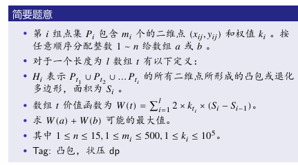 // 对于每个ii(非0),存储所有包含组的联合凸包以及对应的面积(2倍面积)