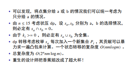 // 状态转移:F(ii) = max_{i in ii} { F(ii without i) + K[i] * (uni_s[ii] - uni_s[ii without i]) }