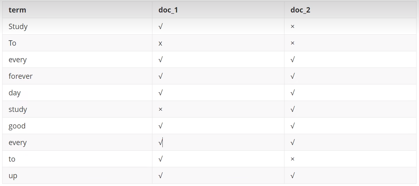 这种结构适用于快速的全文搜索,一个索引由文档中所有不重复的列表构成,对于每一个词,都有一个包含它的文档列表。