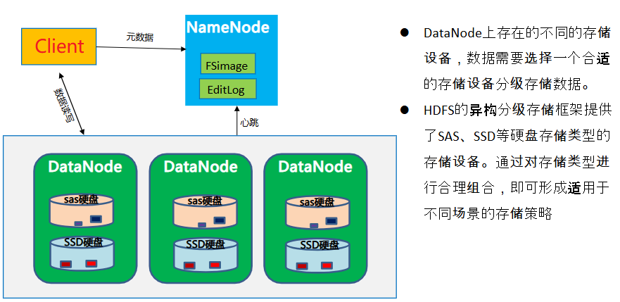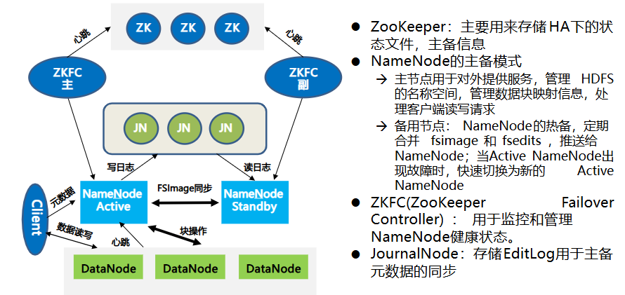 - Client:Client包括命令行、应用程序、Web管理界面等。Client是用户和HDFS的交互手段。用户通过Client与名字节点、数据节点进行通信,访问HDFS文件系统